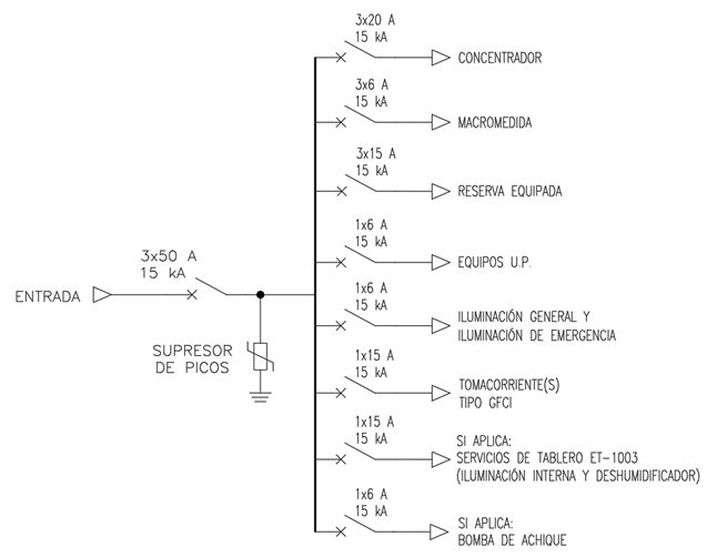 - Opcional. Bomba de achique para subestaciones subterráneas: 15-20 A