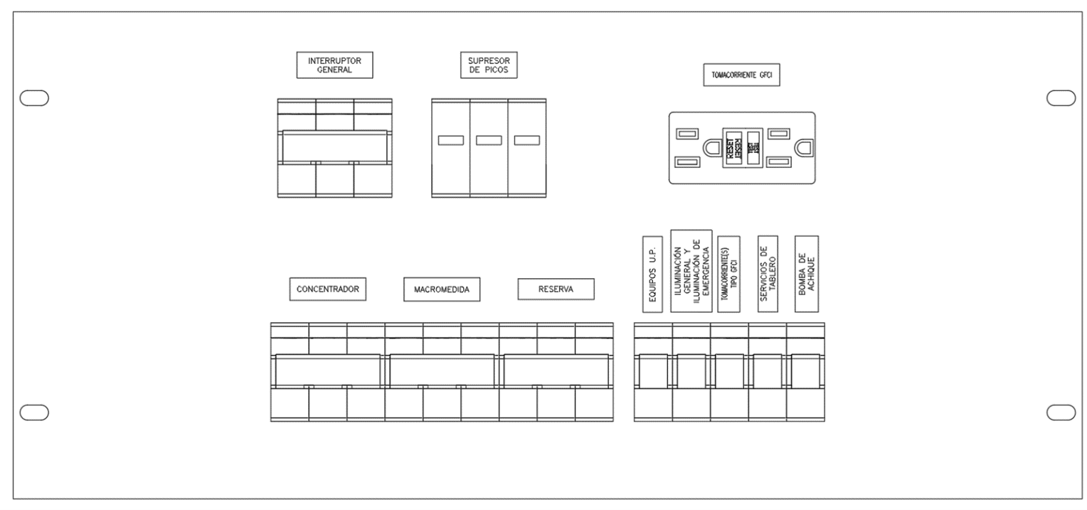 - GSCL001/6 (nuevo) Electrical control panel for auxiliary services without insulation transformer for rack 19” installation acorde con especificación ET-1003 Tablero de TLC y Servicios Auxiliares Centros MT/BT. (subestación nueva)