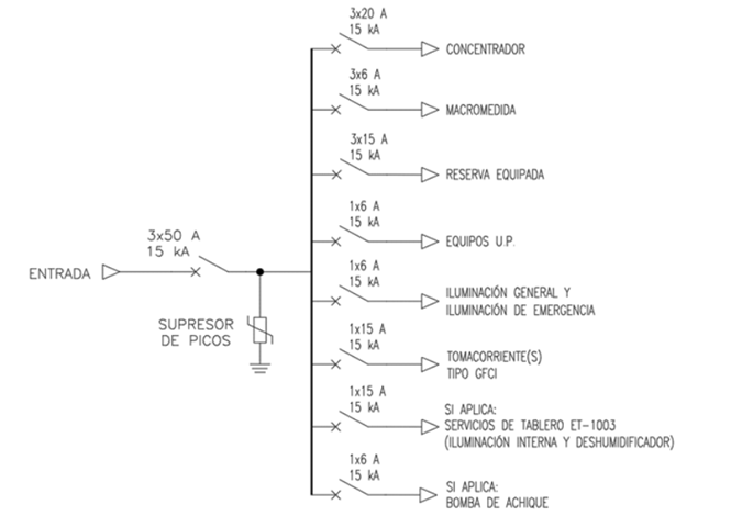 - Opcional. Bomba de achique para subestaciones subterráneas: 15-20 A