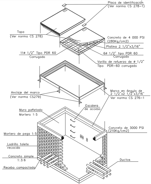 CS276-2 Caja de inspección doble para canalización de M.T. y B.T. (vista isométrica)