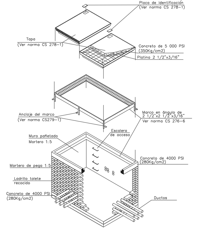 CS276-7 Caja de inspección doble para canalización de M.T. y B.T. (vista isomética) en calzada