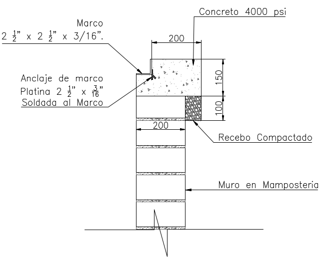 CS279-1 Detalle de anclaje de marco en cajas de inspección en calzada