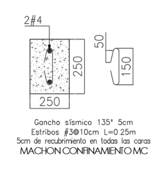 - Machones de refuerzo ubicados en las esquinas, ver vista en planta para el detalle del machón.