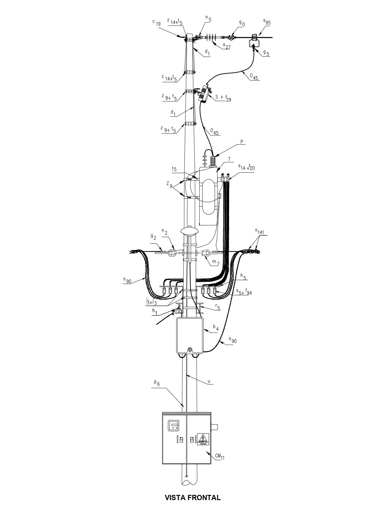 - Esta estructura es válida con transformador hasta 150 kVA y peso menor a 700 kg.