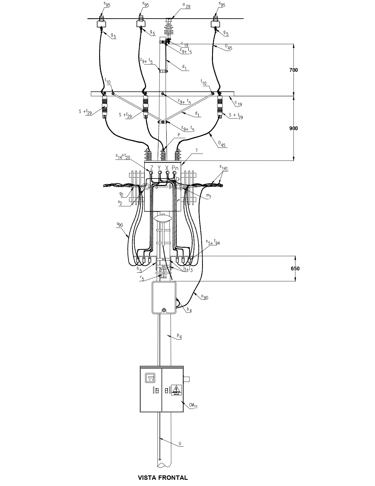 CTU501 Montaje en poste de transformador trifásico. Circuito tangencial.